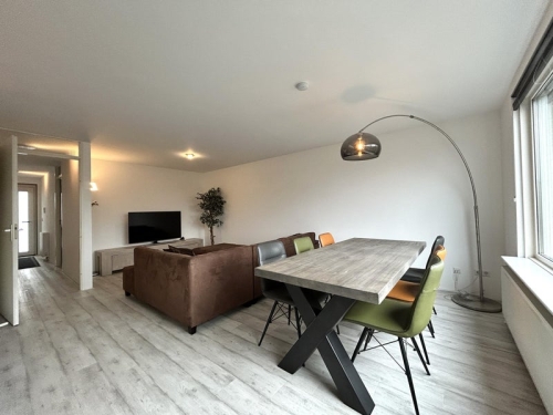 Het appartement is gelegen op de tweede verdieping, bereikbaar via de trap of de lift. Het is op de bovenste verdieping. Je komt het appartement binnen in de hal met een toilet, badkamer en aan beide zijden een slaapkamer. De woonkamer is ruim en licht. Er staat een grote L-bank met grote televisie. Grote eettafel voor zes personen. De open keuken is voorzie...... Als je verder klikt kom je bij een nieuwe pagina met uitgebreide informatie over de huurwoning en met de directe contactgegevens van de beheerder